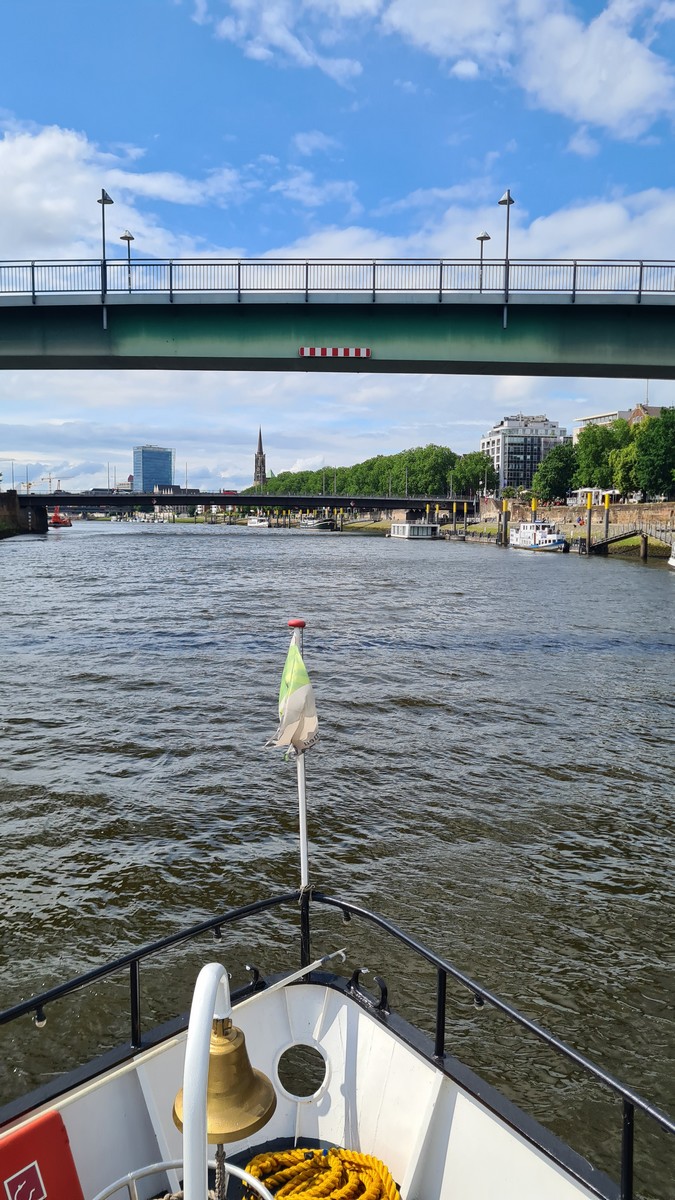 Der Startpunkt einer Bremer Hafenrundfahrt war in unmittelbarer Nähe der "letzten Brücke vor New York". Ein für viele Auswanderer wichter Meilenstein. Die Führung begann mit einer Rückblick auf die Auswanderer und Hintergrund Informationen zur Bedeutung der Weser für die die Rolle der Amerikaner auf die Stadtentwicklung nach dem zweiten Weltkrieg.
